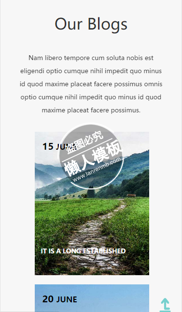 模板简介:该模板名称为【Outdoors登高团体旅行html5旅行社旅游手机wap网站模板免费下载】,大小是,文档格式为.,推荐使用打开,作品中的图片,文字等数据均可修改,图片请在作品中选中图片替换即可,文字修改直接点击文字修改即可,您也可以新增或修改作品中的内容,该模板来自用户分享,如有侵权行为请联系网站客服处理。欢迎来懒人模板【旅游】栏目查找您需要的精美模板。
