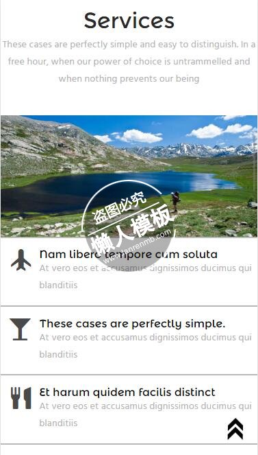 模板简介:该模板名称为【Wandering登山冒险活动html5旅行社旅游手机wap网站模板免费下载】,大小是,文档格式为.,推荐使用打开,作品中的图片,文字等数据均可修改,图片请在作品中选中图片替换即可,文字修改直接点击文字修改即可,您也可以新增或修改作品中的内容,该模板来自用户分享,如有侵权行为请联系网站客服处理。欢迎来懒人模板【旅游】栏目查找您需要的精美模板。