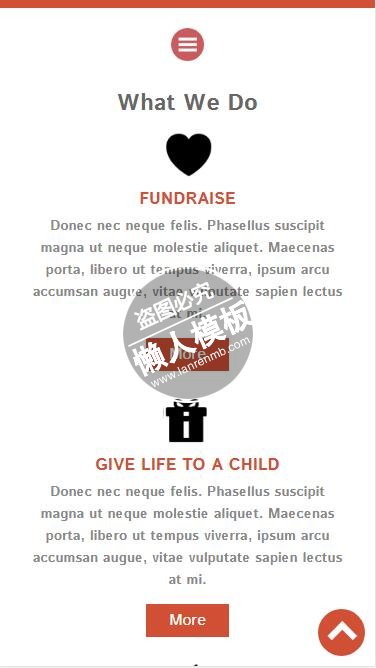 模板简介:该模板名称为【Orphans Care照料孤儿场所html5公益社交手机网站模板免费下载】,大小是,文档格式为.,推荐使用打开,作品中的图片,文字等数据均可修改,图片请在作品中选中图片替换即可,文字修改直接点击文字修改即可,您也可以新增或修改作品中的内容,该模板来自用户分享,如有侵权行为请联系网站客服处理。欢迎来懒人模板【社区】栏目查找您需要的精美模板。