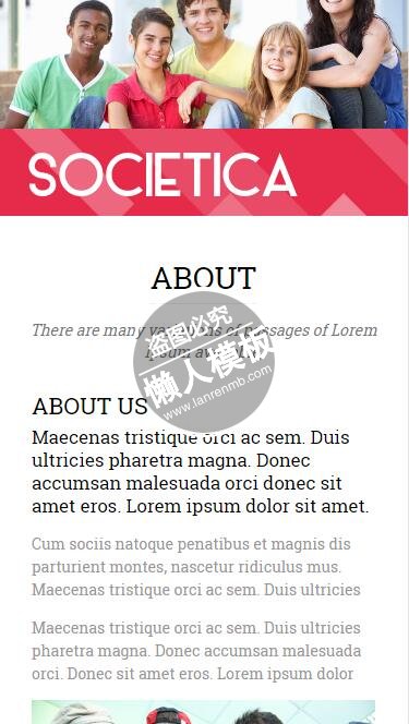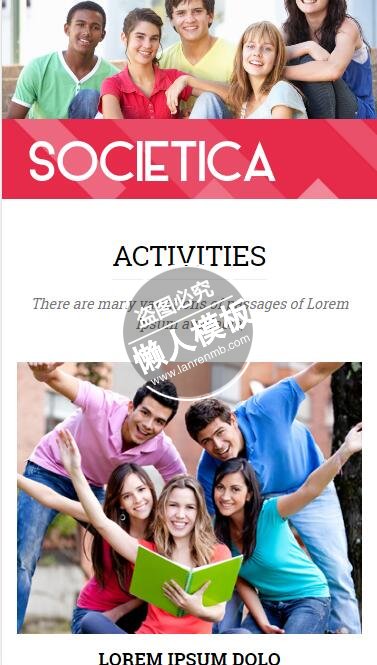 模板简介:该模板名称为【Societica家庭团结和睦html5公益社交手机网站模板免费下载】,大小是,文档格式为.,推荐使用打开,作品中的图片,文字等数据均可修改,图片请在作品中选中图片替换即可,文字修改直接点击文字修改即可,您也可以新增或修改作品中的内容,该模板来自用户分享,如有侵权行为请联系网站客服处理。欢迎来懒人模板【社区】栏目查找您需要的精美模板。