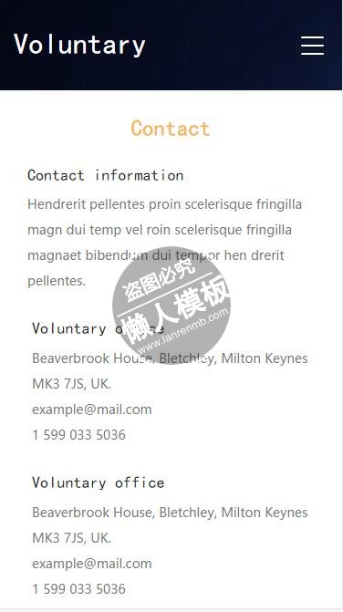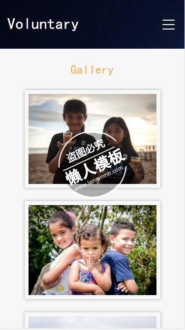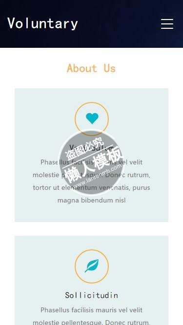 模板简介:该模板名称为【Voluntary帮助孩子获得教育html5公益社交手机网站模板免费下载】,大小是,文档格式为.,推荐使用打开,作品中的图片,文字等数据均可修改,图片请在作品中选中图片替换即可,文字修改直接点击文字修改即可,您也可以新增或修改作品中的内容,该模板来自用户分享,如有侵权行为请联系网站客服处理。欢迎来懒人模板【社区】栏目查找您需要的精美模板。