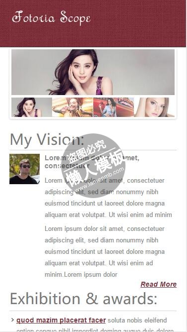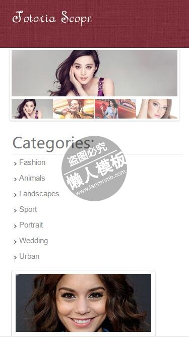 模板简介:该模板名称为【Fotoria-Scope简单幻灯html5手机摄影图片相册网站模板免费下载】,大小是,文档格式为.,推荐使用打开,作品中的图片,文字等数据均可修改,图片请在作品中选中图片替换即可,文字修改直接点击文字修改即可,您也可以新增或修改作品中的内容,该模板来自用户分享,如有侵权行为请联系网站客服处理。欢迎来懒人模板【图片】栏目查找您需要的精美模板。