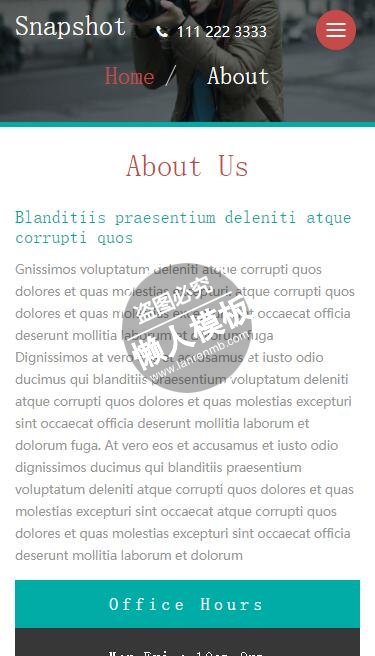 模板简介:该模板名称为【Snapshot喜好相机拍摄html5手机摄影图片相册网站模板免费下载】,大小是,文档格式为.,推荐使用打开,作品中的图片,文字等数据均可修改,图片请在作品中选中图片替换即可,文字修改直接点击文字修改即可,您也可以新增或修改作品中的内容,该模板来自用户分享,如有侵权行为请联系网站客服处理。欢迎来懒人模板【图片】栏目查找您需要的精美模板。