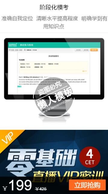 模板简介:该模板名称为【英语四级极速通关班手机专题单页海报制作免费素材模板源码下载】,大小是,文档格式为.,推荐使用打开,作品中的图片,文字等数据均可修改,图片请在作品中选中图片替换即可,文字修改直接点击文字修改即可,您也可以新增或修改作品中的内容,该模板来自用户分享,如有侵权行为请联系网站客服处理。欢迎来懒人模板【专题单页】栏目查找您需要的精美模板。