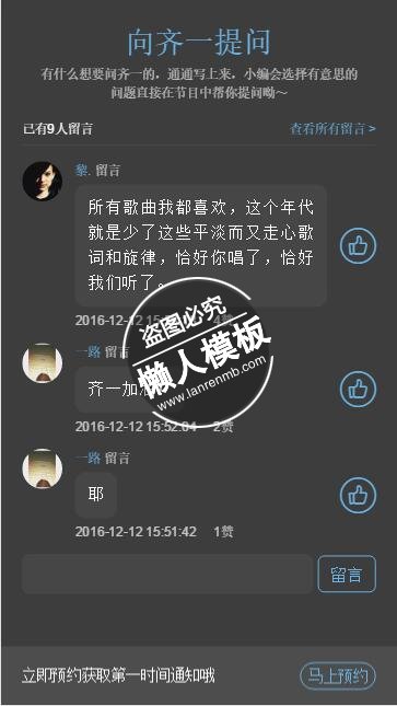 模板简介:该模板名称为【齐一面对面预约手机专题单页海报制作免费素材模板源码下载】,大小是,文档格式为.,推荐使用打开,作品中的图片,文字等数据均可修改,图片请在作品中选中图片替换即可,文字修改直接点击文字修改即可,您也可以新增或修改作品中的内容,该模板来自用户分享,如有侵权行为请联系网站客服处理。欢迎来懒人模板【专题单页】栏目查找您需要的精美模板。